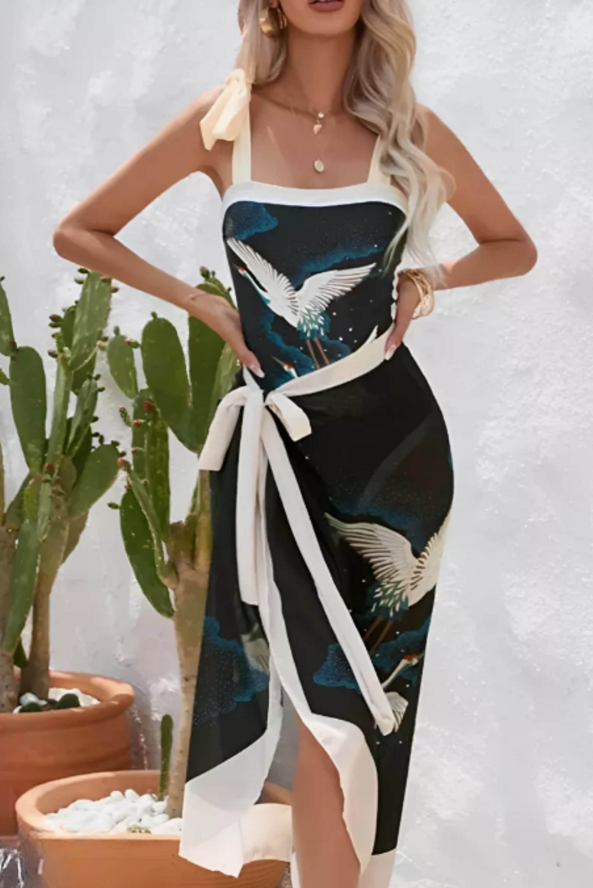 Black Boho Striped Floral Bubble Sleeve Mini Dress