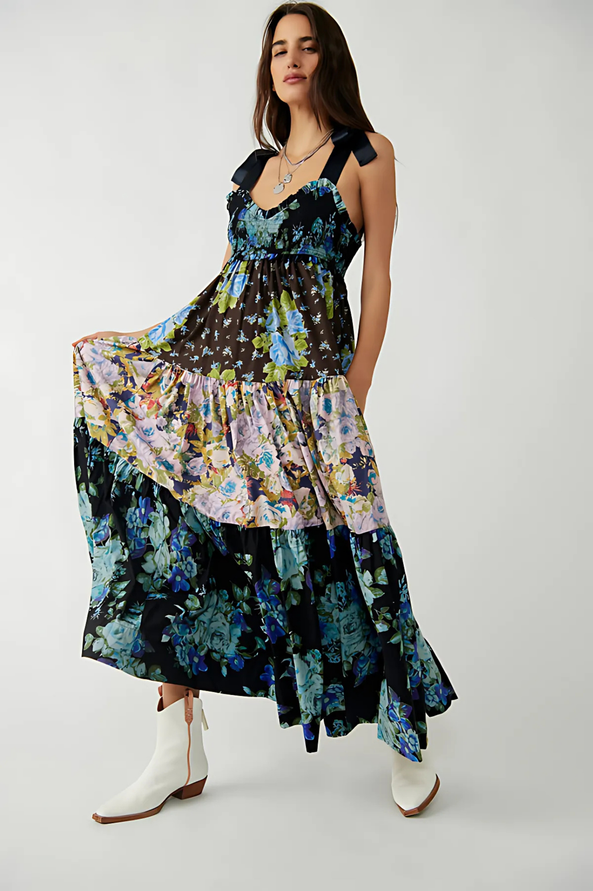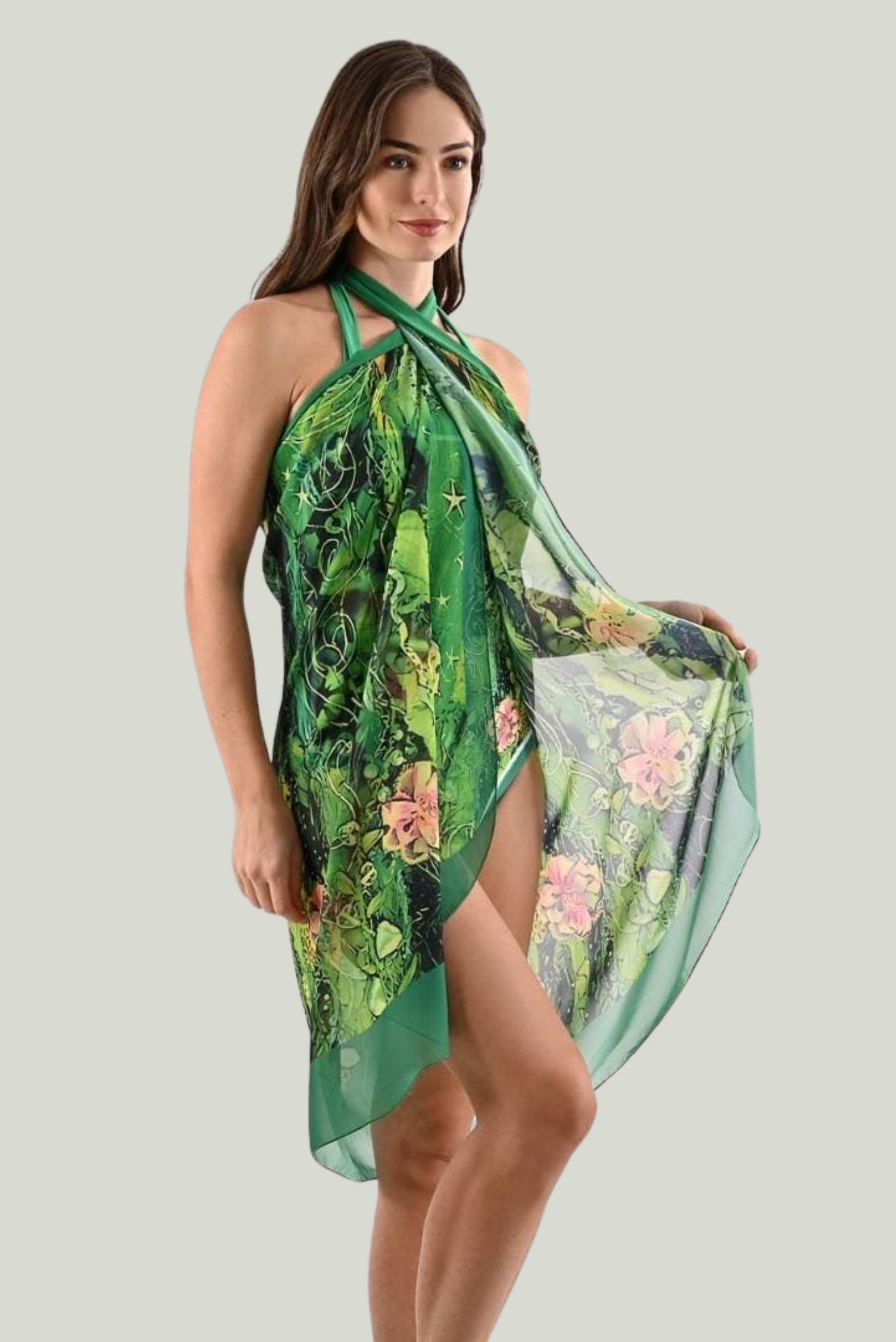 Green Ethnic Print Boho Tiered Mini Flowy Dress