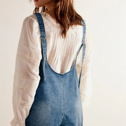 Dusk Blue Bowknot Puff Sleeve Denim Dress