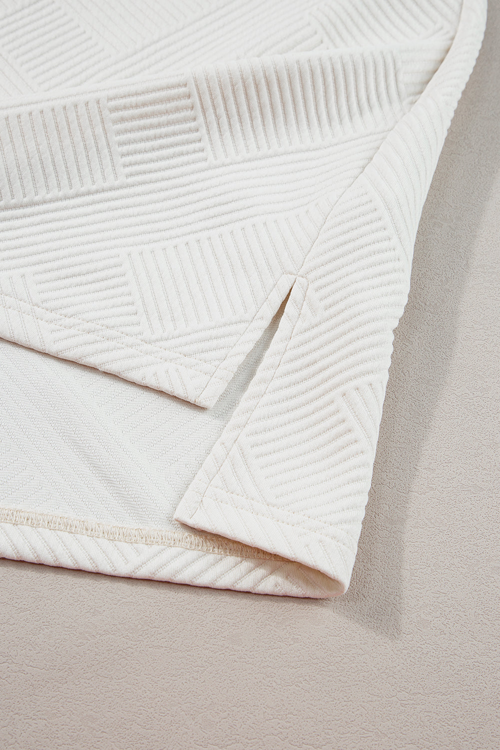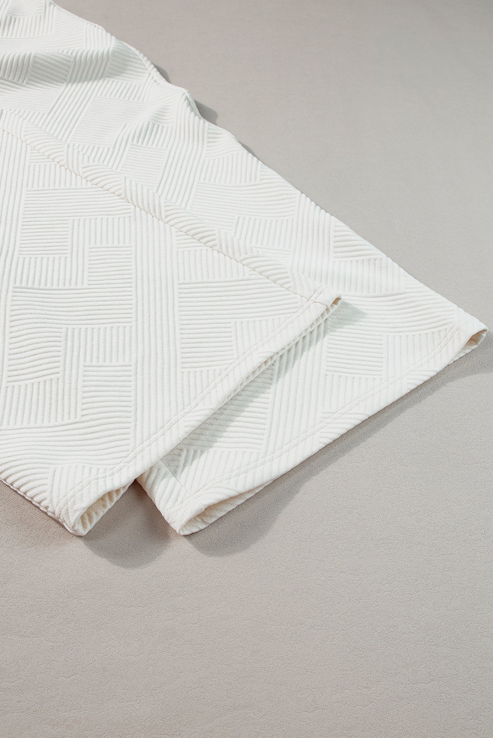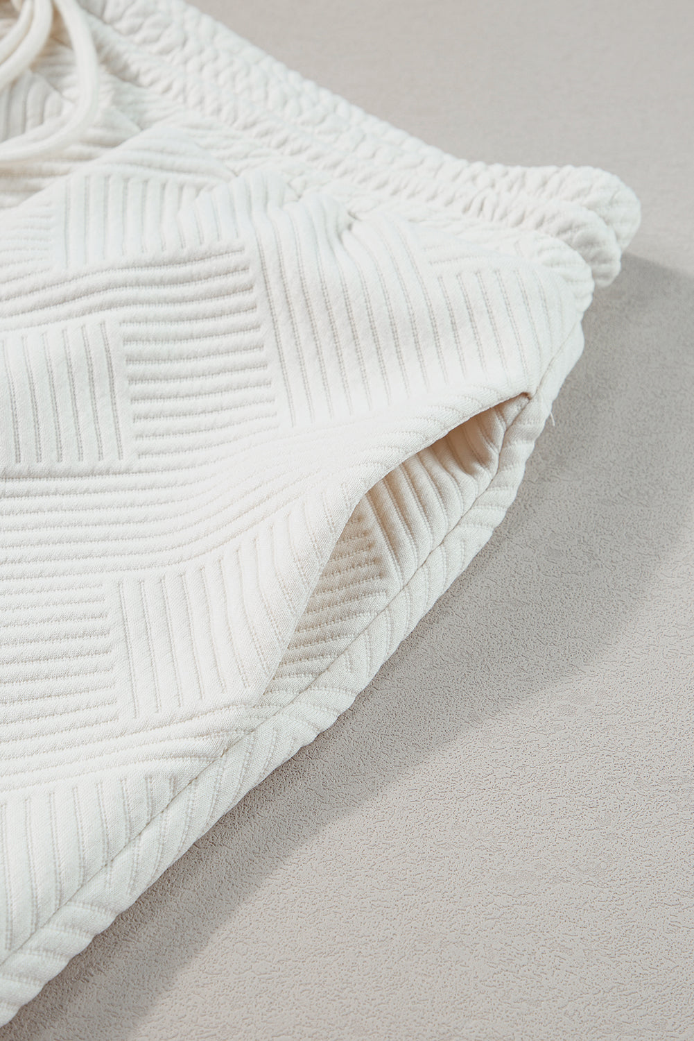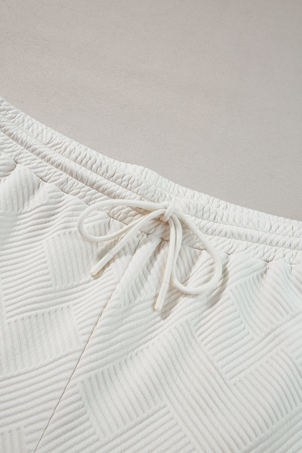 Beige Plus Size Textured Collared Top and Drawstring Pants Set