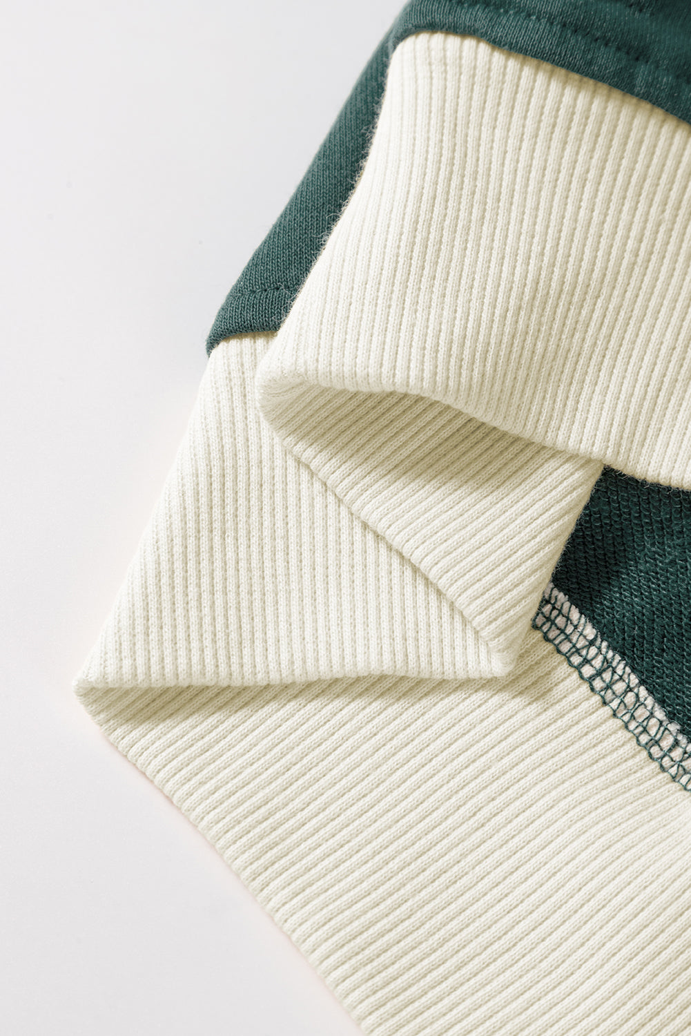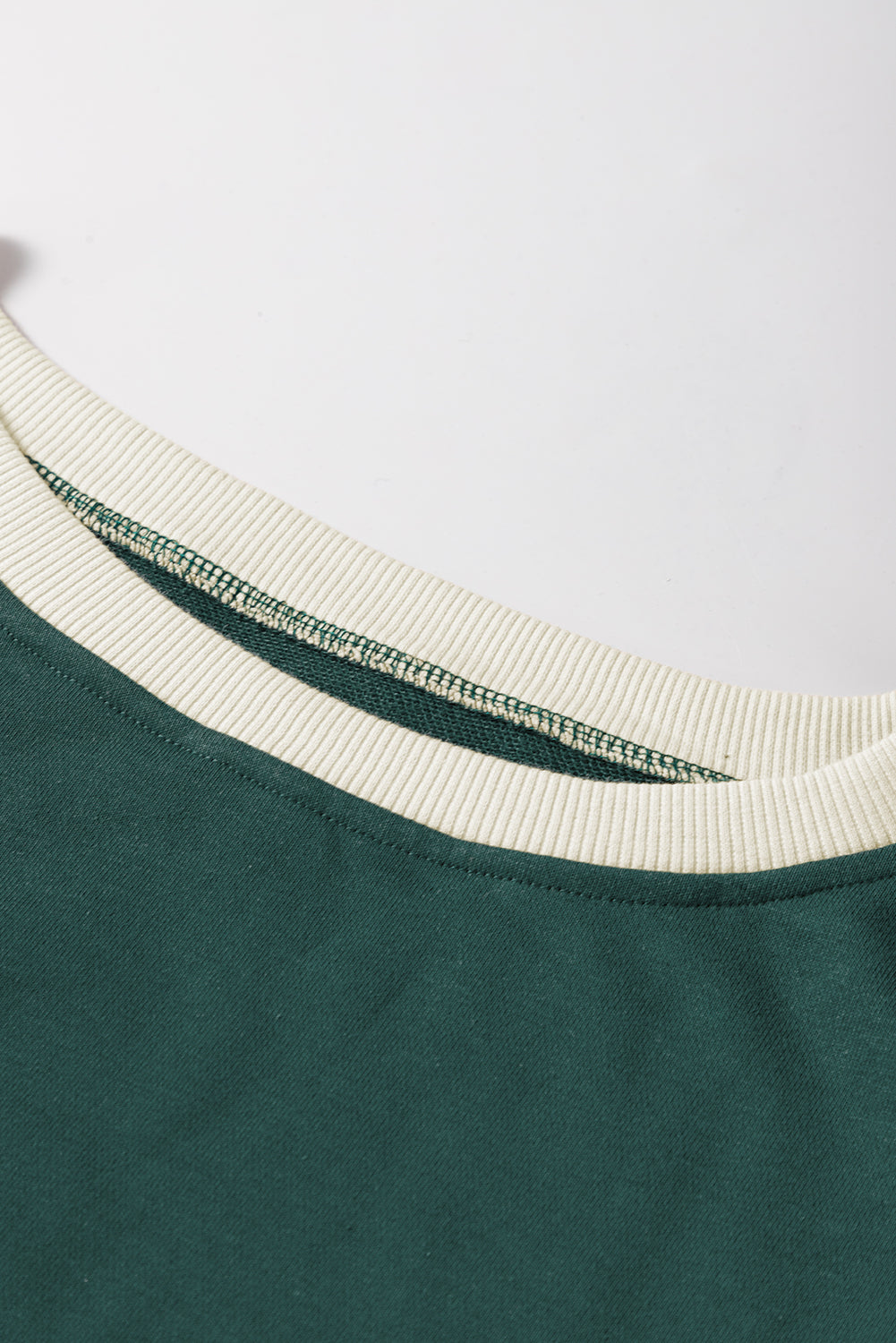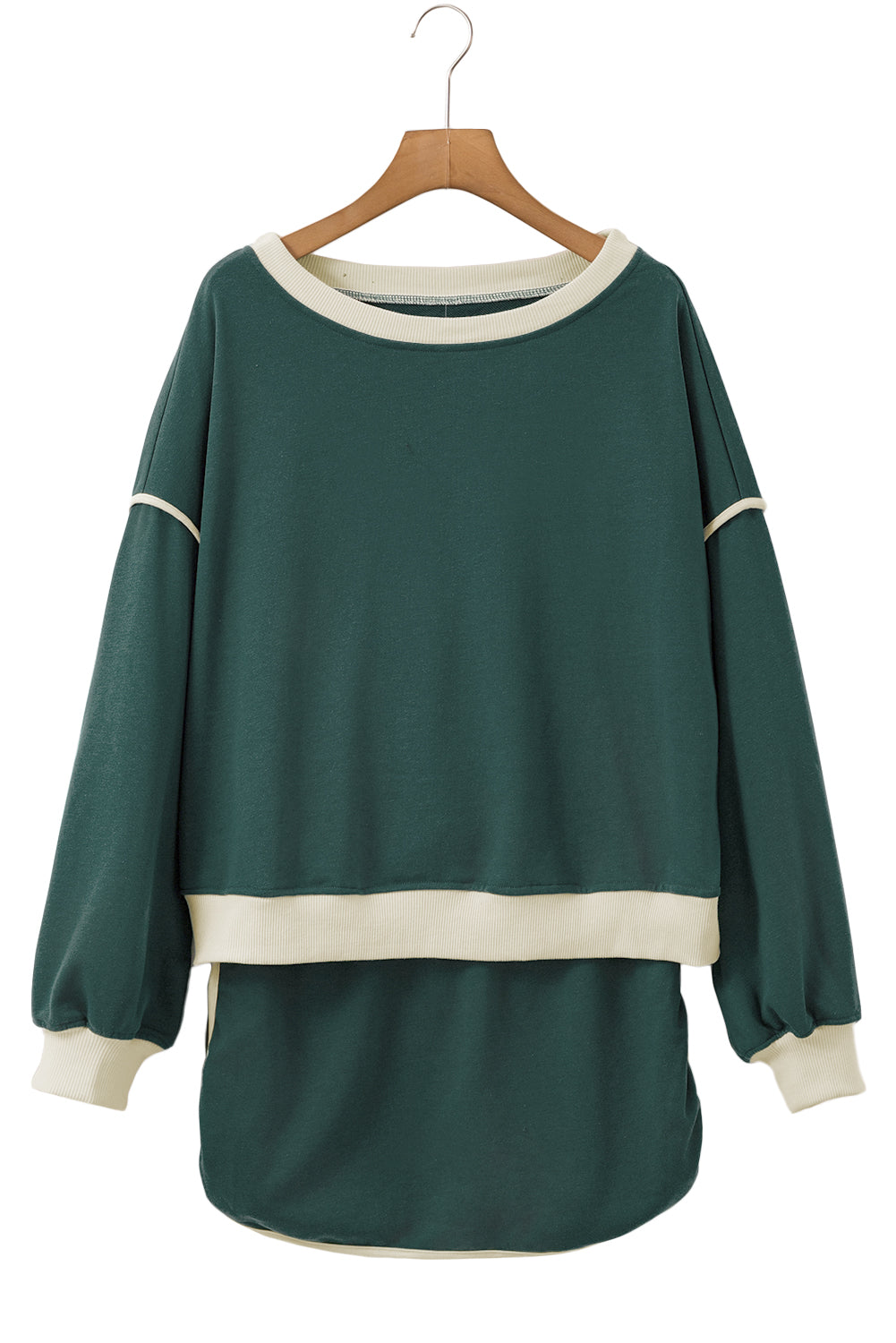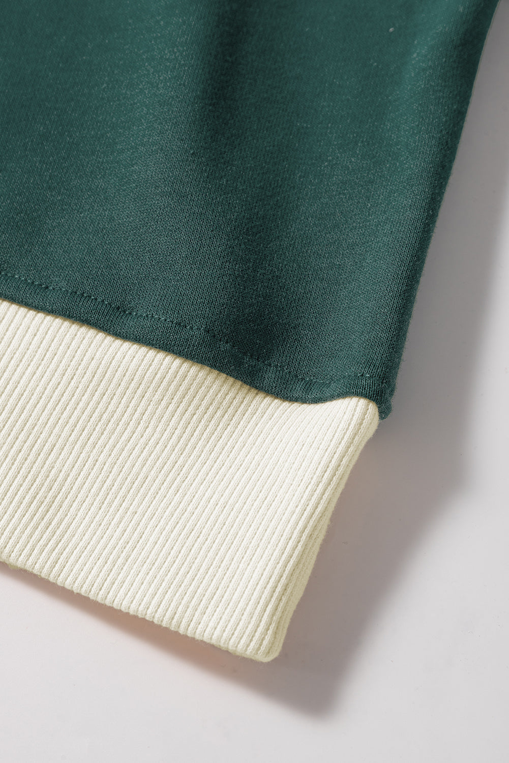 • The pullover features a striking contrast trim design, adding a modern twist to the classic loose silhouette.