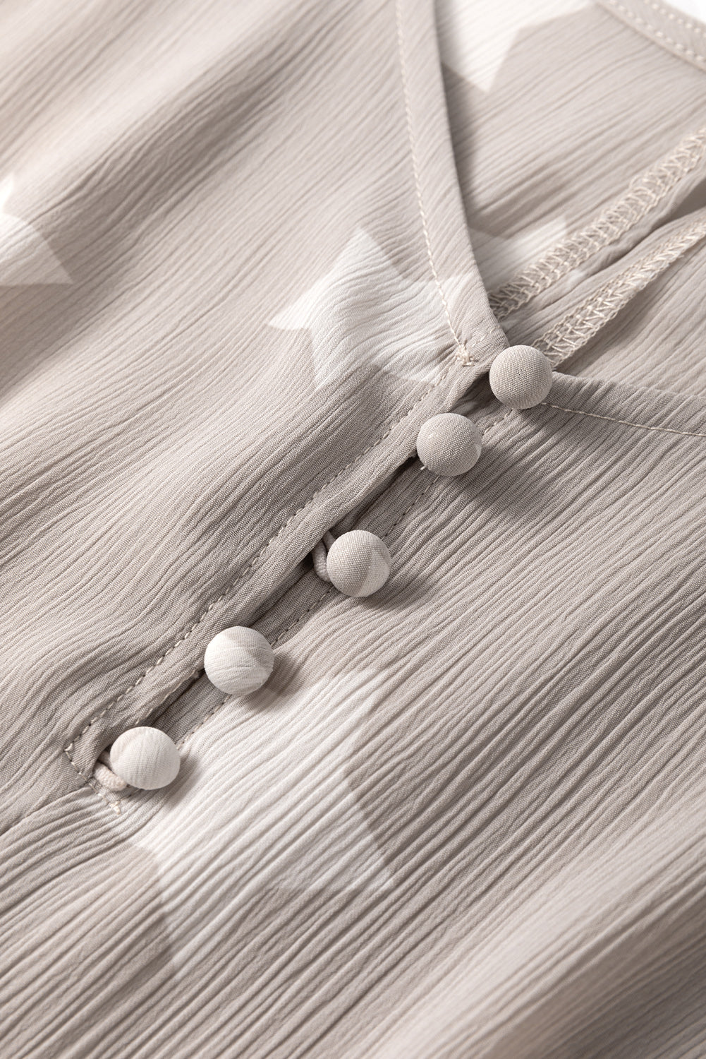 - The V-neck elongates the neckline, while three-quarter sleeves provide versatile styling for any occasion.