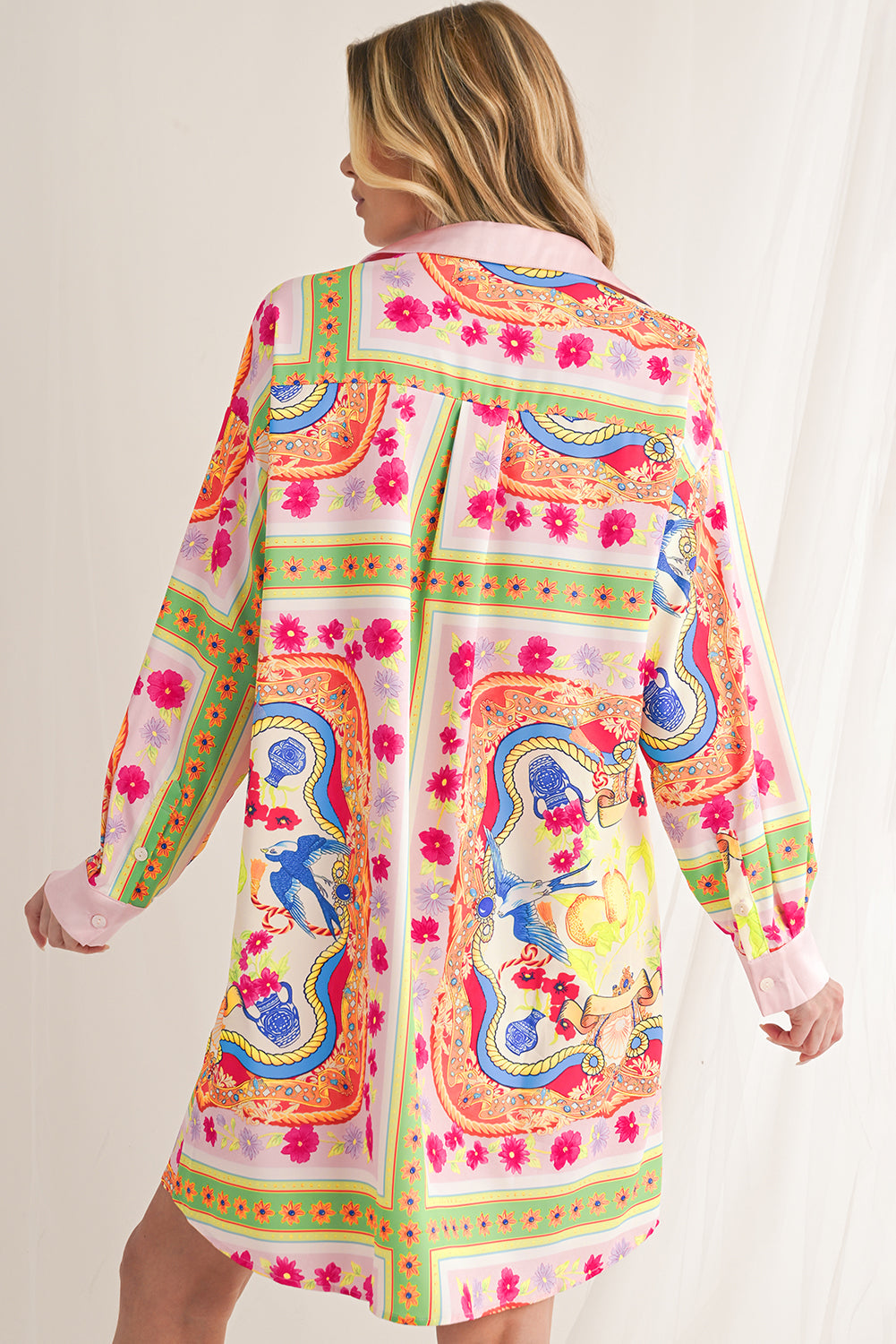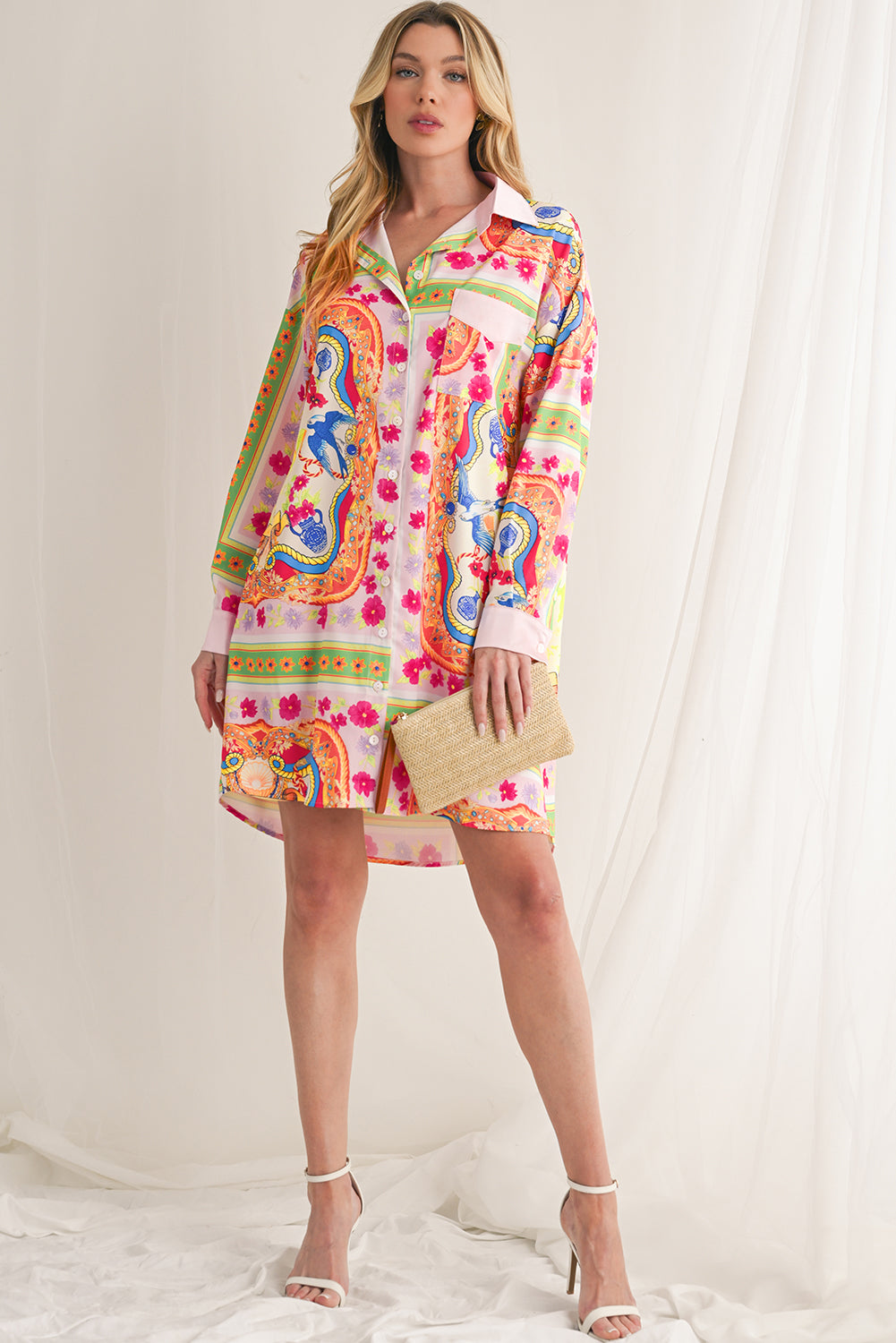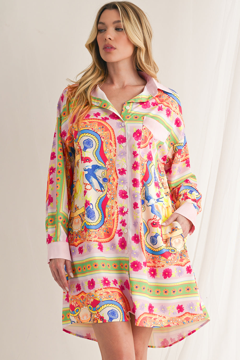 ● Infuse vibrancy into your wardrobe with our Multicolour Abstract Print Button Long Sleeve Shirt Dress.