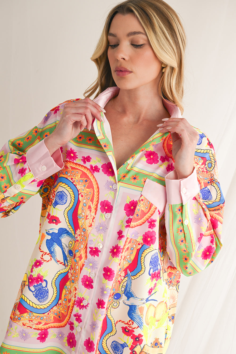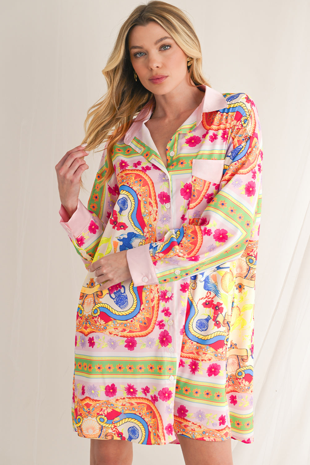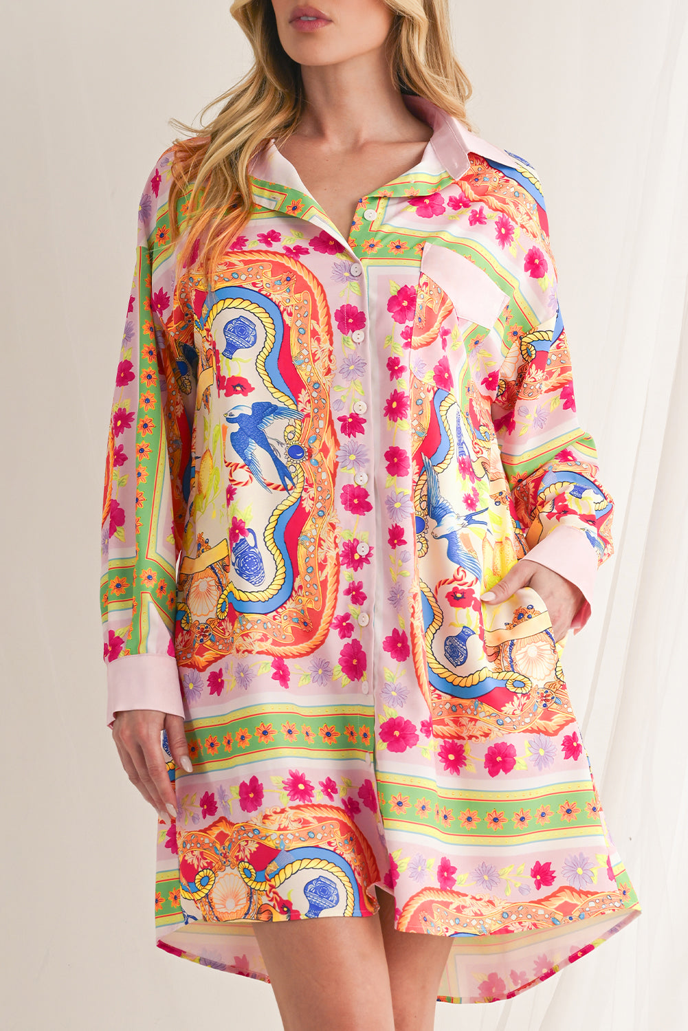 ● Infuse vibrancy into your wardrobe with our Multicolour Abstract Print Button Long Sleeve Shirt Dress.