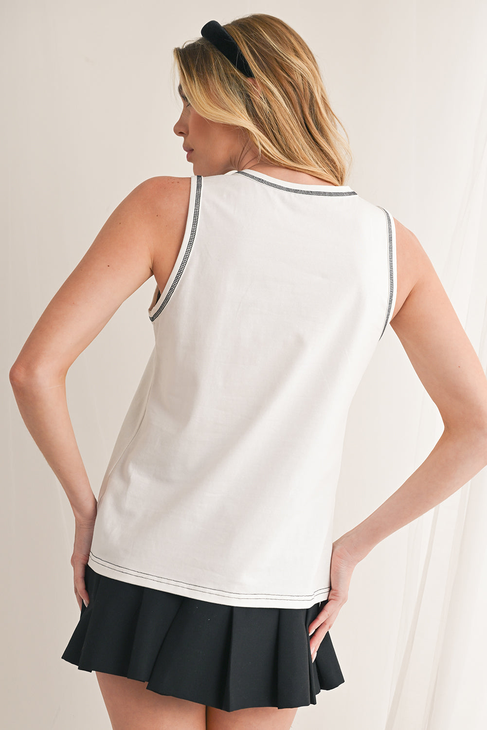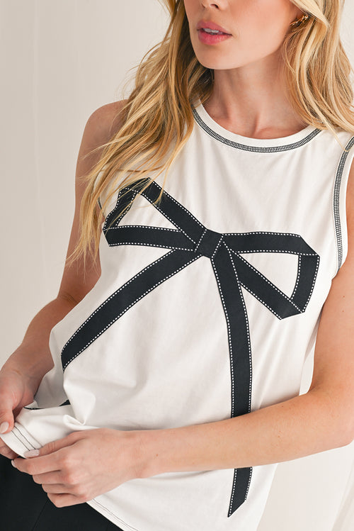 White Sweet Bow Stitching Trim Sleeveless Top